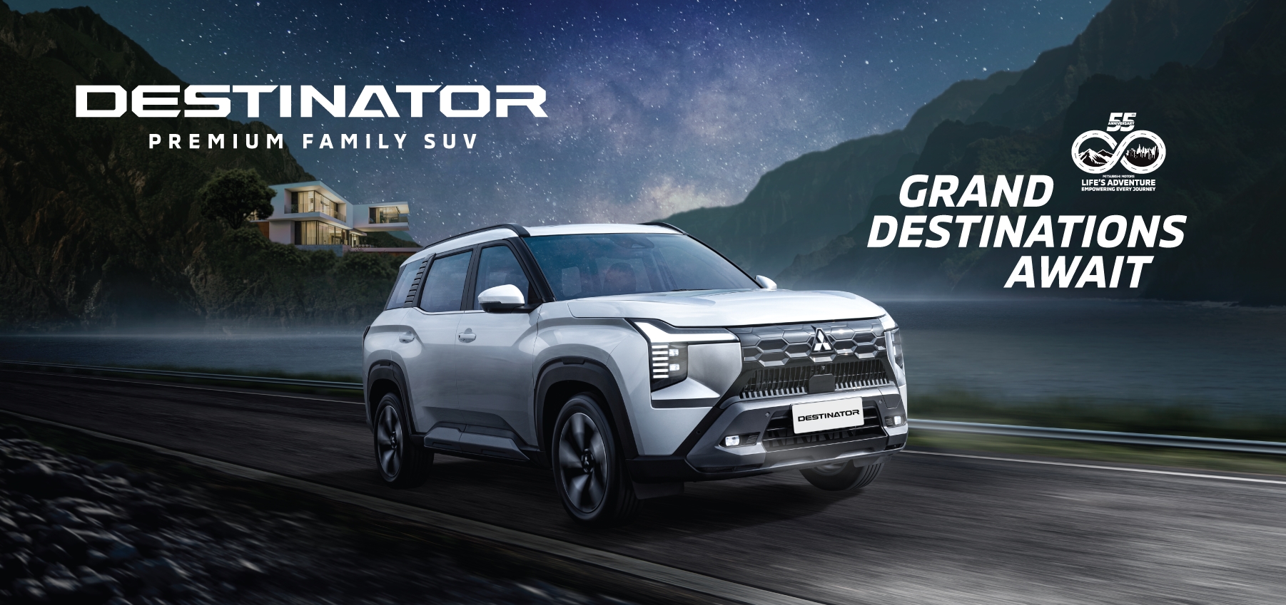 Mitsubishi Destinator adalah SUV terbaru yang dirancang untuk keluarga modern yang aktif. Tampil dengan desain gagah khas SUV, kabin luas 7-penumpang, serta fitur kenyamanan dan keselamatan terkini untuk perjalanan harian maupun luar kota.